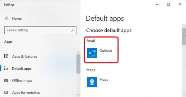 In the Windows search bar type “Default Apps”. Select and run this system application. On the top is email. Select Outlook for the default email app, close this app, save your work files and close your programs, then reboot your system.